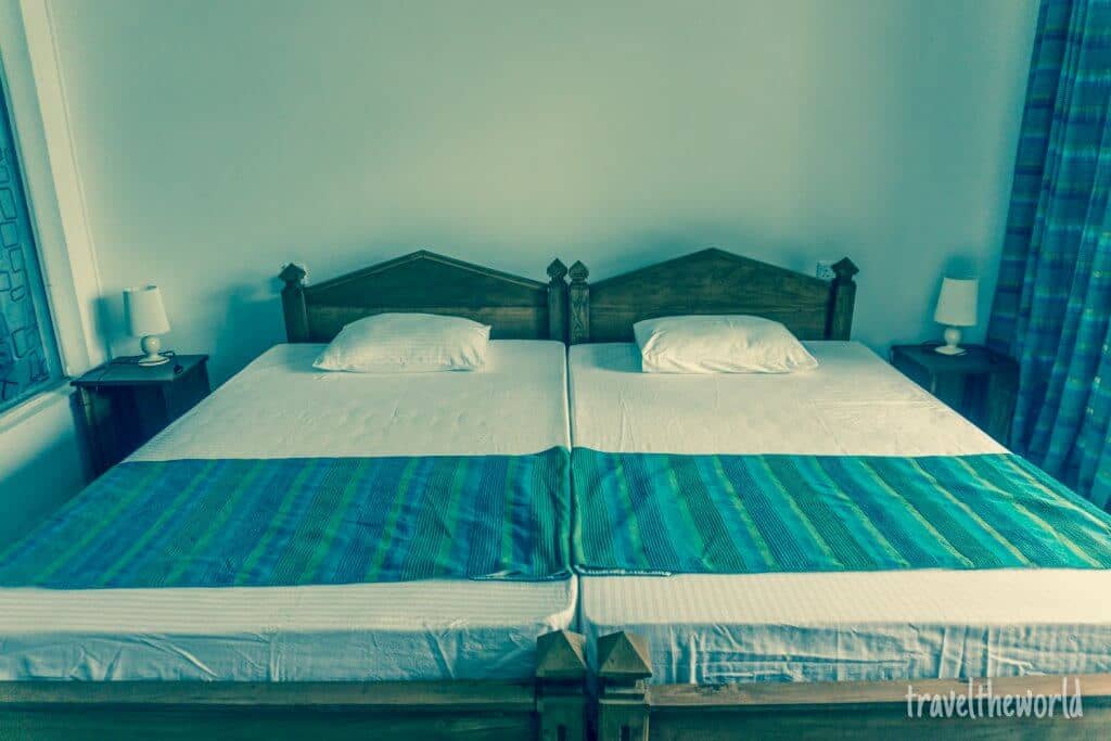 Habitación doble con baño privado y desayuno incluído cuesta alrededor de 42-57€ euros (7000-9000 rupias).Información